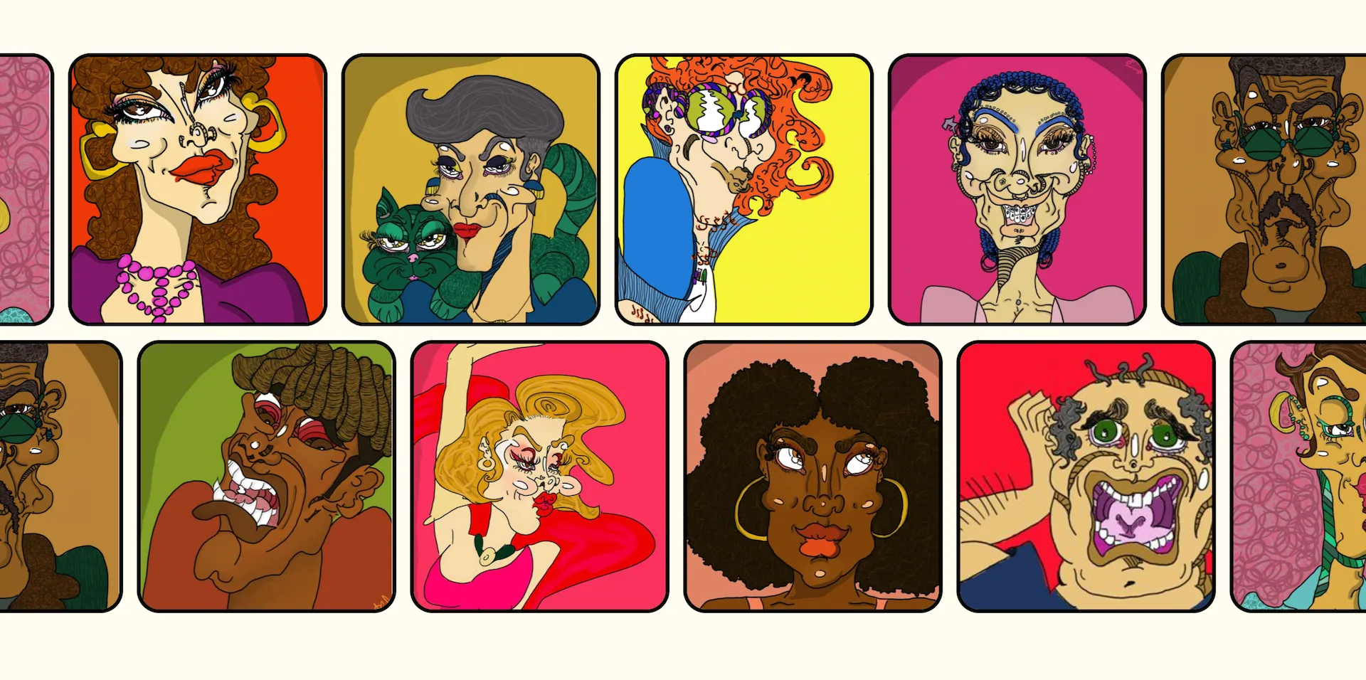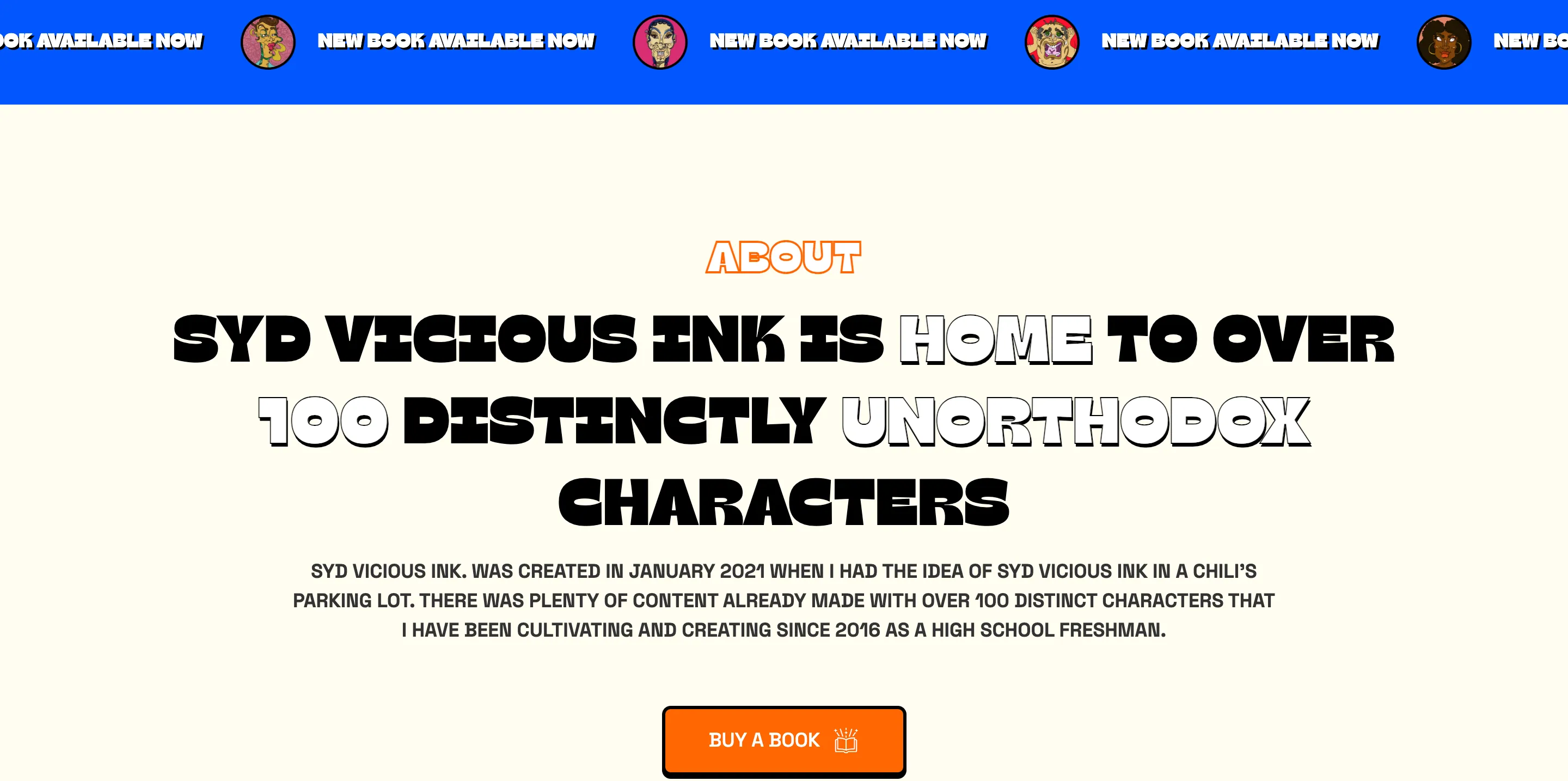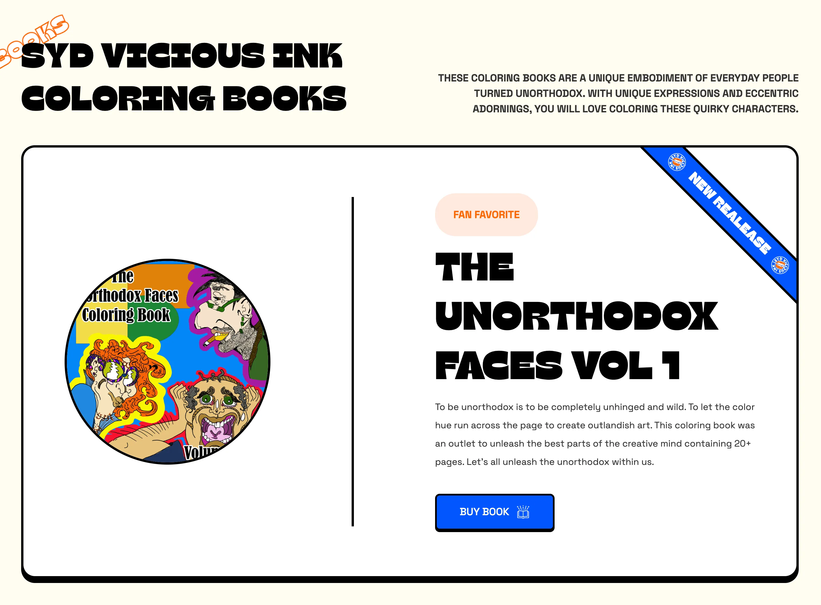 This website is truly one of a kind, featuring eccentric characters drawn by the young artist herself and large, bubbly typography. The hero section of the site displays an animation of multiple characters created by the artist. Scrolling down, users will find a sliding section of more unique characters as well as the available coloring books to be purchased. Clicking into each book reveals a description and a sneak peek at the coloring pages.