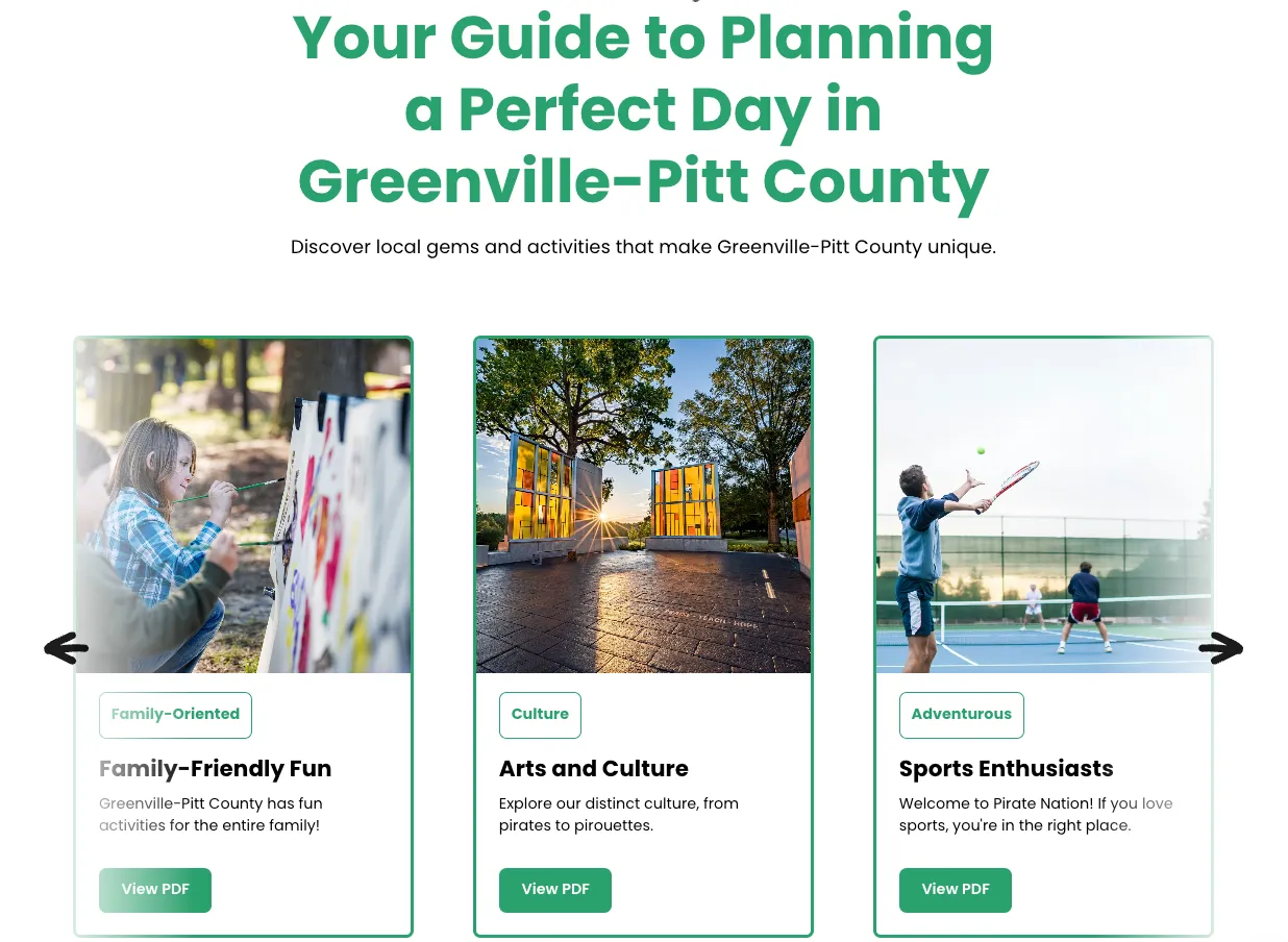 Are you a foodie? A dog lover? Perhaps an art enthusiast or a sports fan? The website offers a variety of flyers tailored to specific interests, highlighting everything Greenville offers to suit your lifestyle. Categories include: