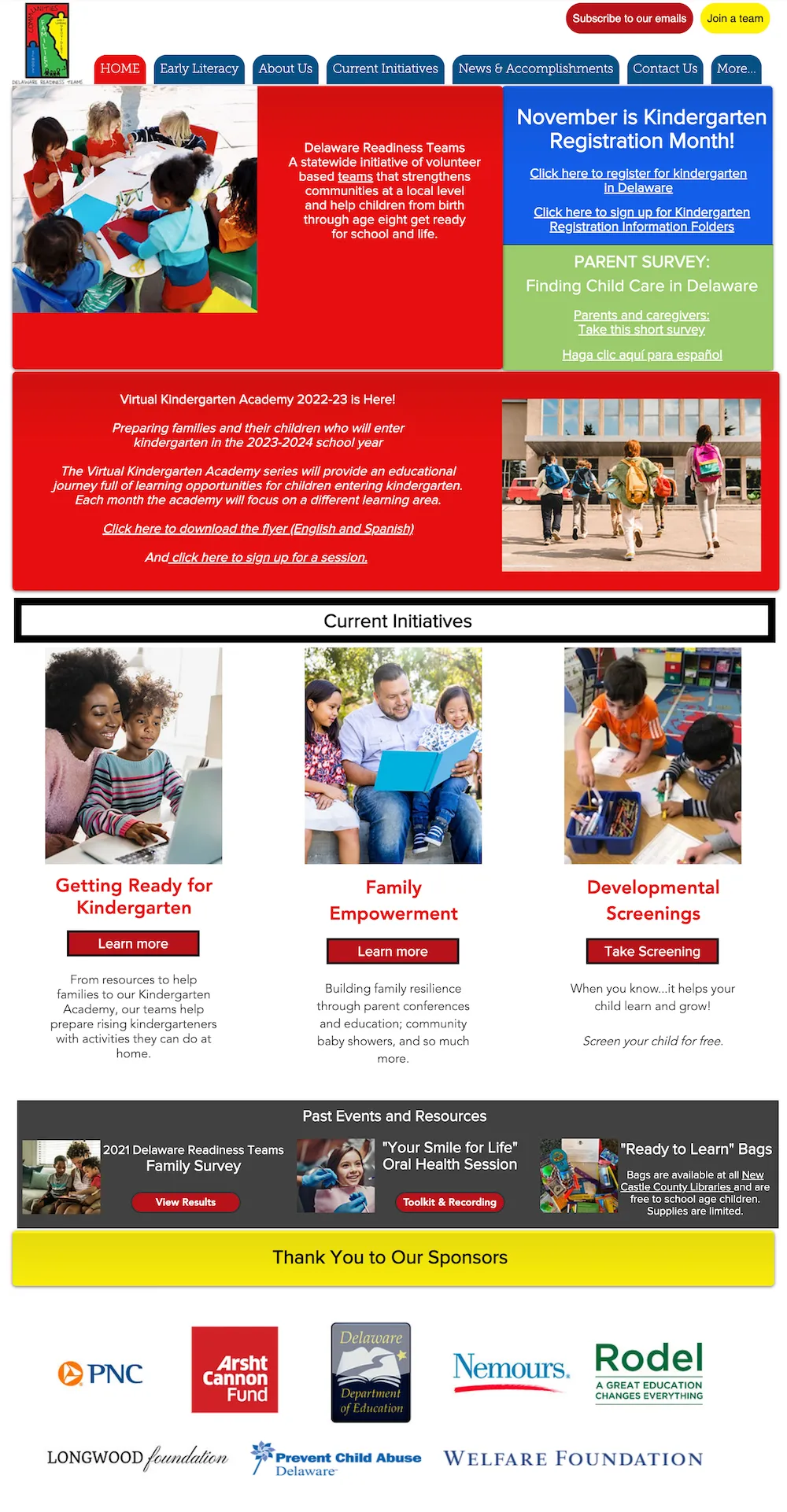 As a statewide initiative of volunteer-based teams, Delaware Readiness Teams needed a website that made information easily accessible to parents and guardians. On the Home page, visitors to the website will find links to Current Initiatives, Upcoming Events, Kindergarten Registration, Family Empowerment, Healthy Children & Developmental Screenings, Advocacy, Past Events & Resources, Teams, and Sponsors. Everything a user might need is readily accessible.